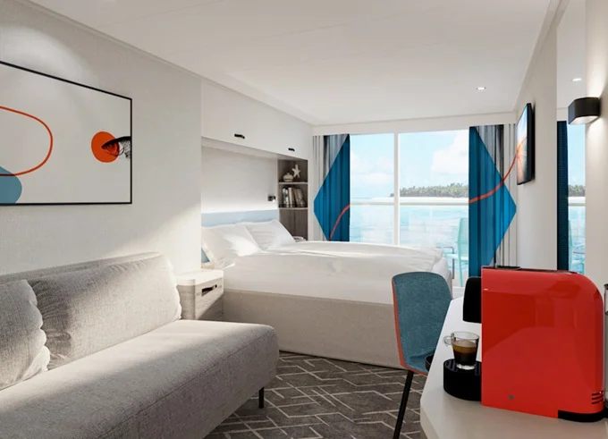 | SUWO - Weitblick Suite 45 m² + balkón 12 m² s hojdacou sieťou. Oddelená spálňa a obývacia časť, šatník. 14. paluba. Max 4 osoby. Výhody Suite. | 14 356 € 3 589 € za osobu | ||