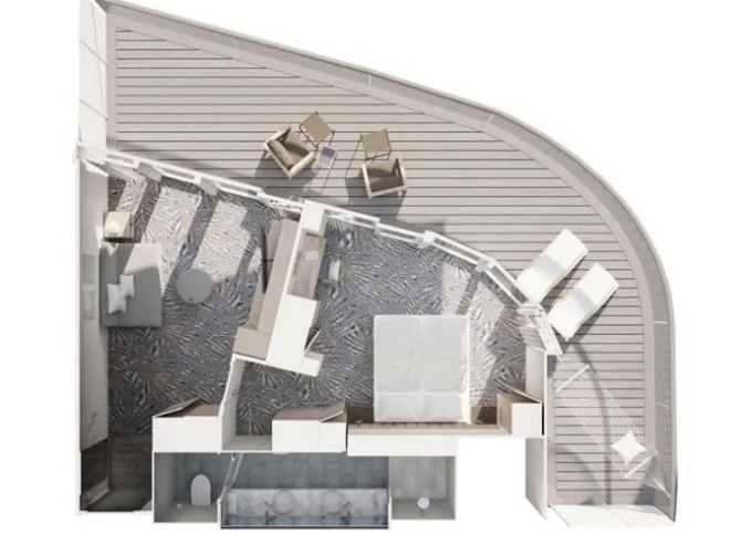 | JBCO - Junior Suite s balkónom C 26 m² + balkón 7 m² so stoličkami a podnožkami. 7. paluba. Max 4 osoby. Výhody Junior Suite. | 8 097 € 2 699 € za osobu |